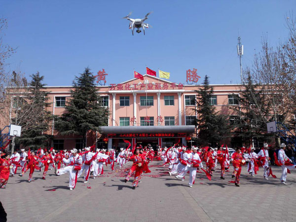 早春的二月,一曲激昂的嗩吶,回響在黃騰的上空,來自陜北的一群妮子、后生一聲吼。頭扎白羊肚,腰系紅綢帶,鼓聲震天,酣暢淋漓,他們的動(dòng)作都充滿了激情,充滿了活力,眼神里洋溢著對幸福生活的驕傲。