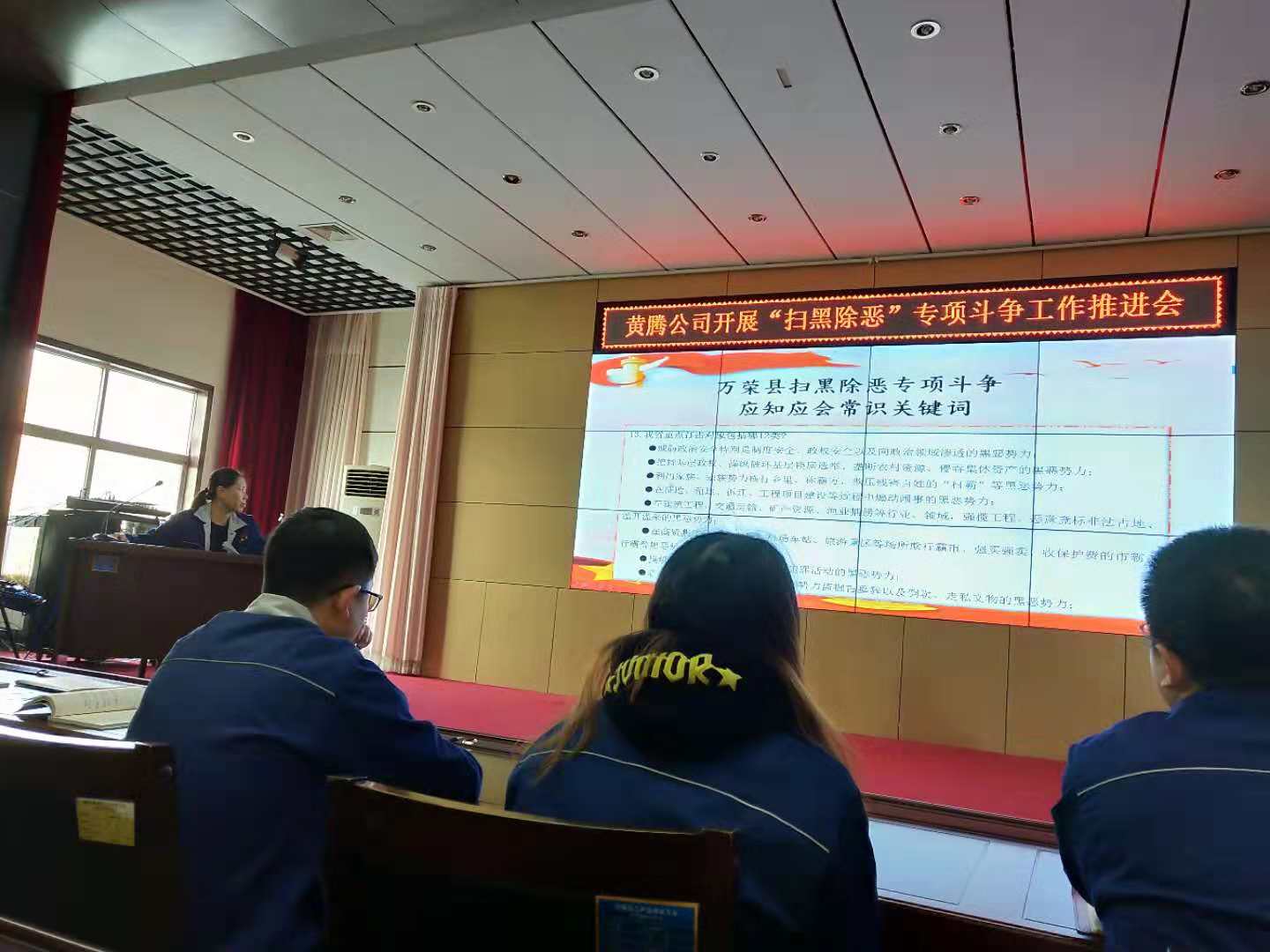 11月12日,黃騰公司開展“掃黑除惡”專項(xiàng)斗爭工作推進(jìn)會,會議由公司行政總監(jiān)郝瑞霞主持。