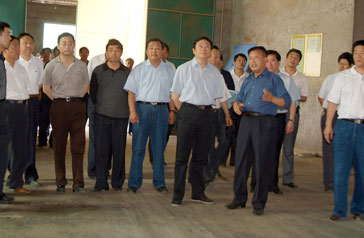 于省長在我公司干燥車間專心細致地觀察產(chǎn)品的成色                     于省長在董事長的陪同下參觀研發(fā)中心
